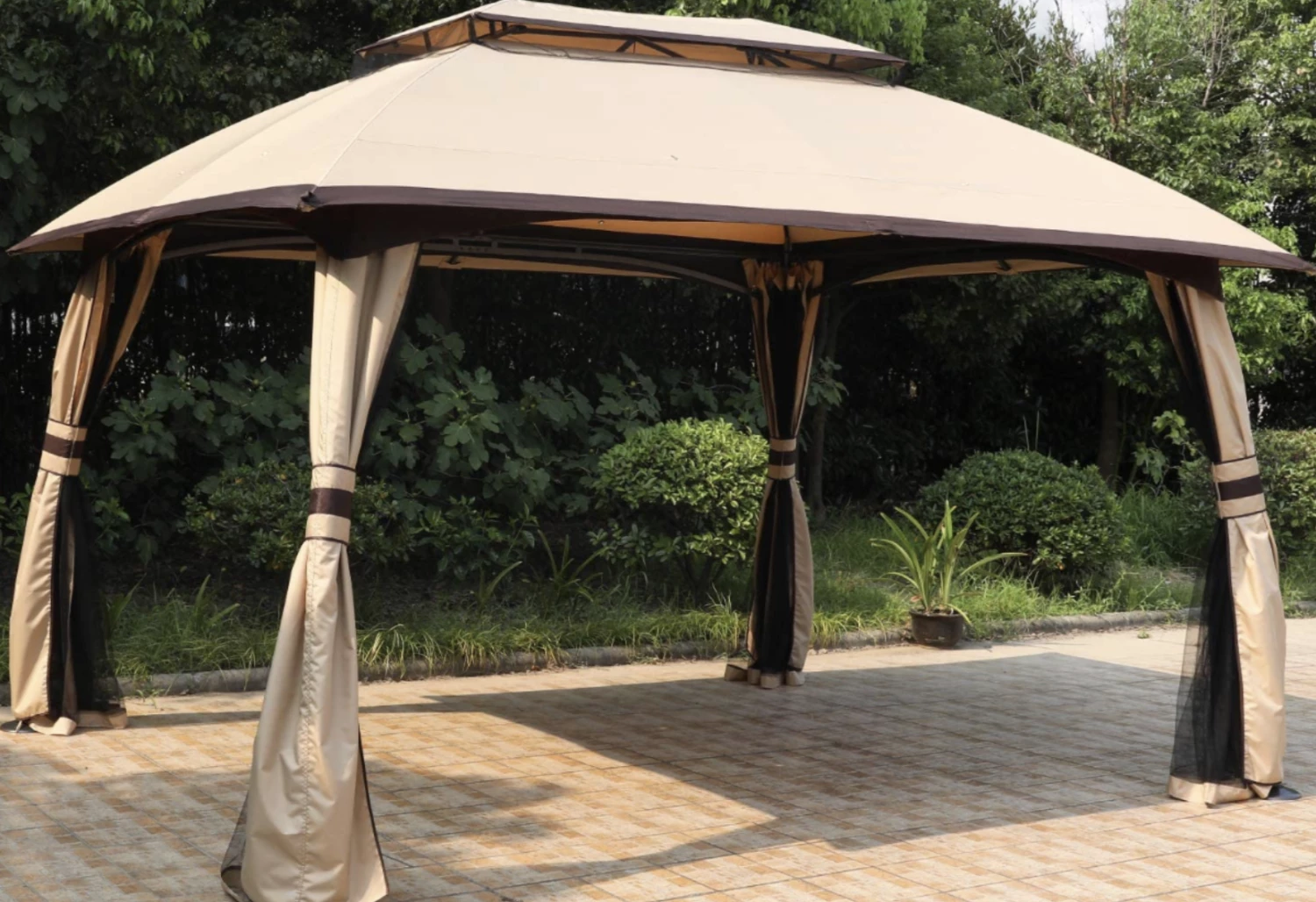 We love this gazebo! The beige color is elegant, and the netting keeps bugs out. It’s a great addition to our outdoor space and has held up well in different weather conditions.