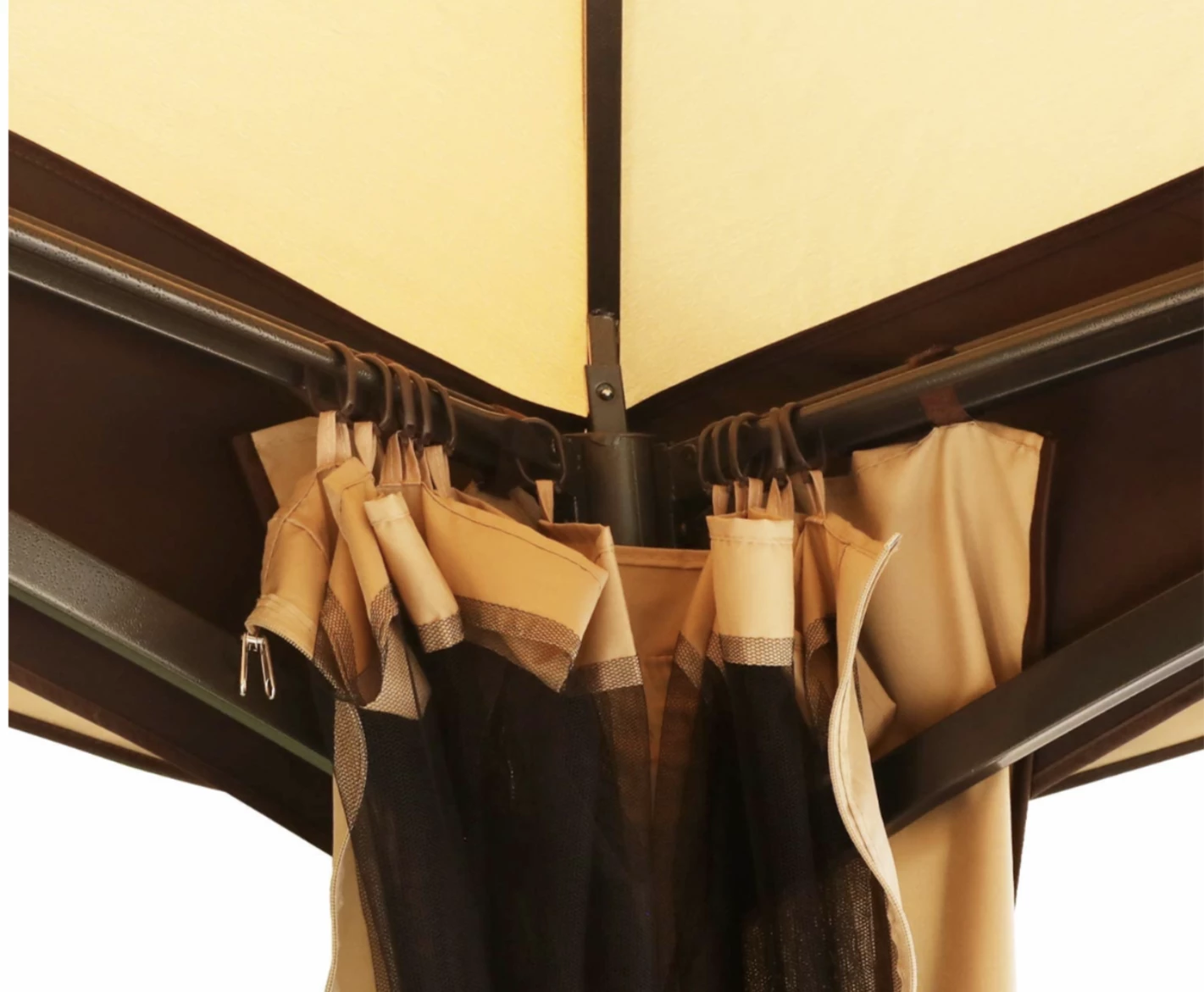 I’m impressed with the quality of this gazebo. The beige color is neutral and elegant, and the netting keeps bugs out without obstructing the view. Highly recommend!