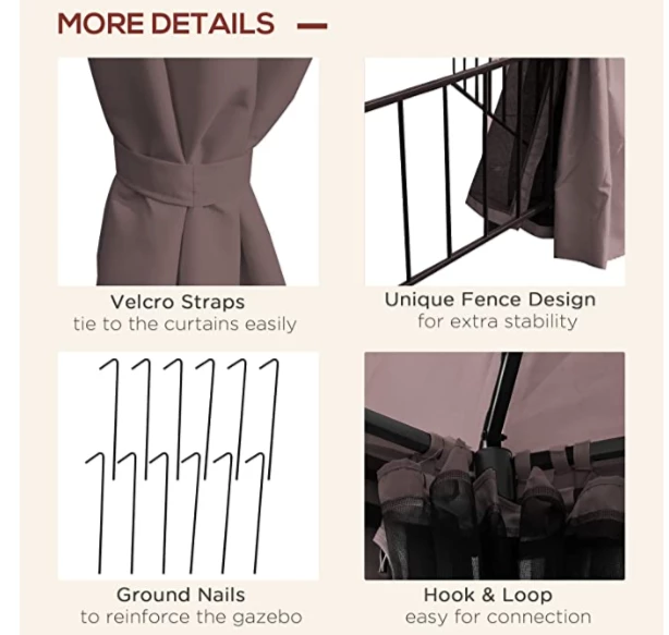 - STURDY AND STABLE: The 6 supporting pipes on top and 6 upright posts on the corners of this backyard gazebo ensures superior durability. 12 ground stakes are used to secure the legs firmly to the ground to provide extra support on windy days. NOTE 1: Accumulated snow must be removed from the roof. 2: Just so you know: this item ships and arrives in separate boxes. Delivery times may vary with each box. Box quantity: 2