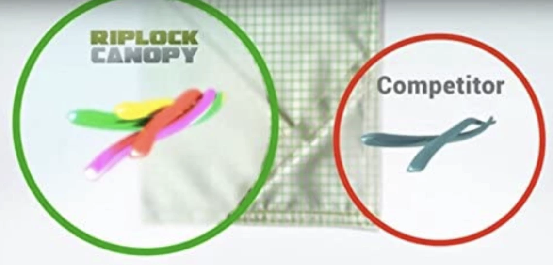 - RipLock 350 Canopy 3 with Ultra Stitch – 350 Denier Polyester Fabric with double RipLock Technology (double walled high tensile strength gridlines designed to stop rips from spreading) Color: Slate Gray (different from original)