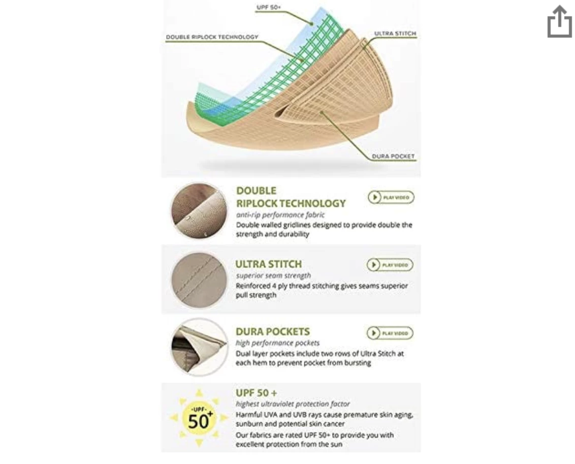 - UPF 50+, water resistant, CPAI-84 fire retardant