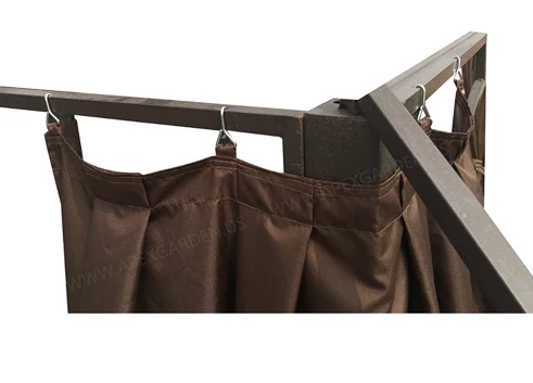 - Color: Brown. Four pieces of corner curtains for cover four poles of your gazebo. Storage your existing curtains and mosquito net inside the corner curtains when not using them. IT IS NOT A SUNSHADE PANEL, IT CAN ONLY COVER THE POLES.