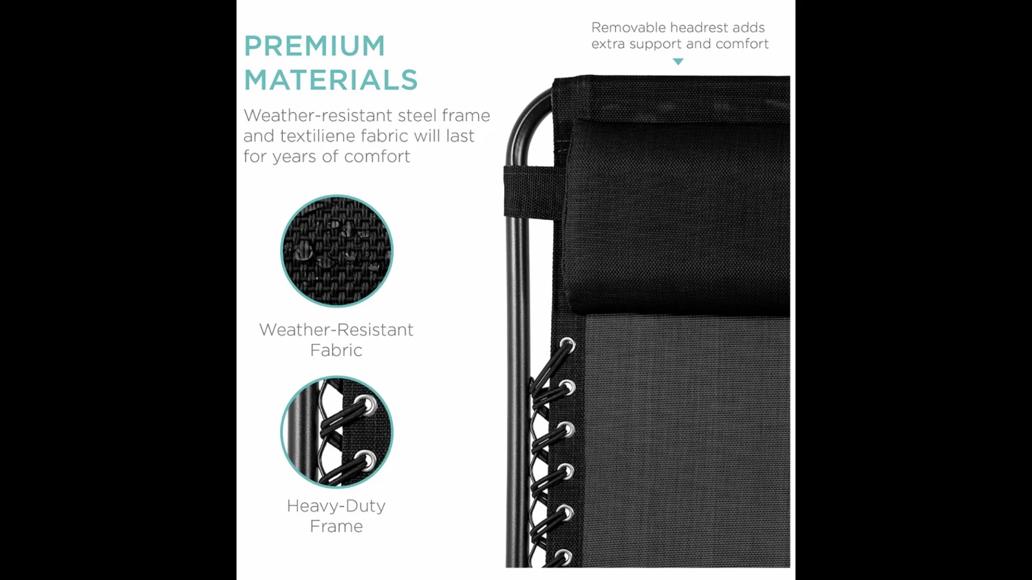 - REMOVABLE, ADJUSTABLE HEADRESTS: Includes a removable, padded headrest for an extra element of adjustable comfort; OPEN DIMENSIONS: 32.5″-61″(L) x 25″(W) x 33.5″-44″(H); FOLDED DIMENSIONS: 38″(L) x 25″(W) x 6″(H)