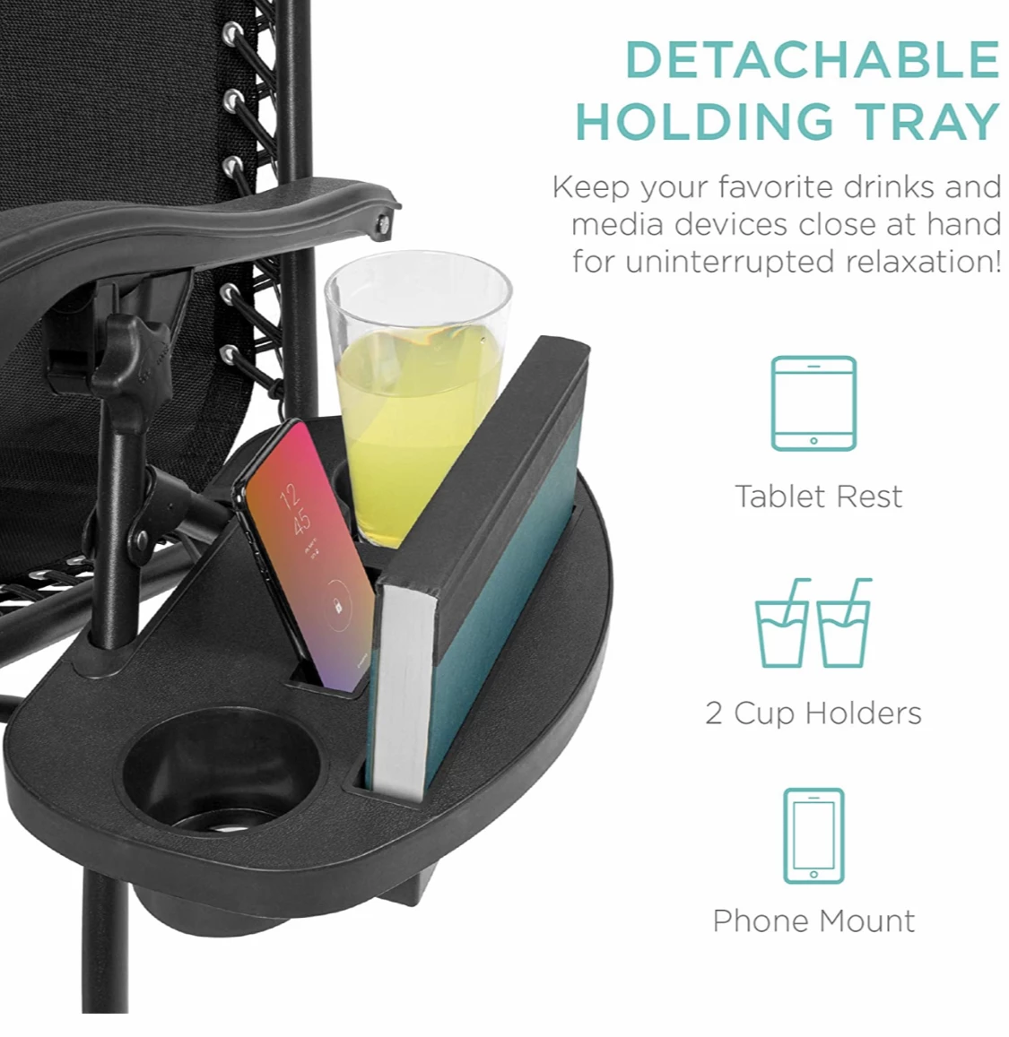 - CONVENIENT & DETACHABLE TRAY: Removable tray is built with two cup holders, a phone holder, and a tablet holder so you never have to be far from your favorite drinks or media devices!