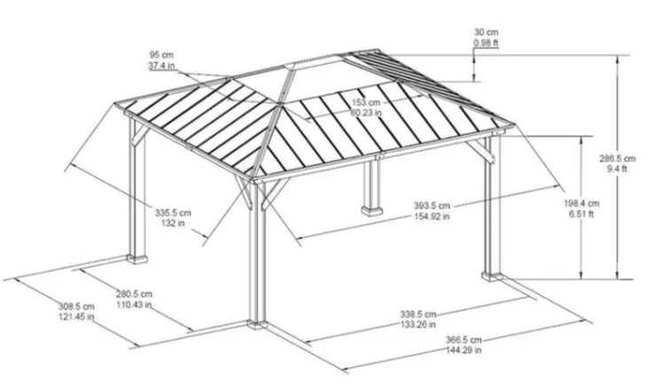 Expand your living space by bringing the indoors outside and creating your end-of-the-day oasis that’s the perfect spot for entertaining family and friends. This 11 ft. x 13 ft. gazebo by the world’s leading ready-to-assemble outdoor structure maker, Sunjoy, creates the perfect outdoor setting for any time of the year. Spend all four seasons enjoying a covered spot outdoors under the cedar wood frame with a sturdy rust-resistant powder-coated steel and polycarbonate roof top that will stand the test of time. The polycarbonate skylight provides needed shade on hot sunny days while allowing in natural light. Set the mood by suspending a chandelier from the incorporated ceiling hook for additional functional light and high design. With straight-forward, easy-to-follow assembly instructions you’ll be relaxing with your beverage of choice in your favorite new outdoor living space for years to come.